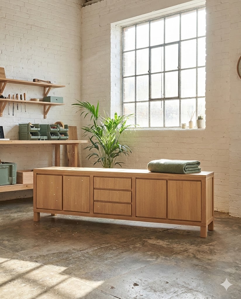 Un vaisselier massif entre à l'atelier. Plusieurs pièces contemporaines en sortent. Entre les deux : un processus complet de transformation.