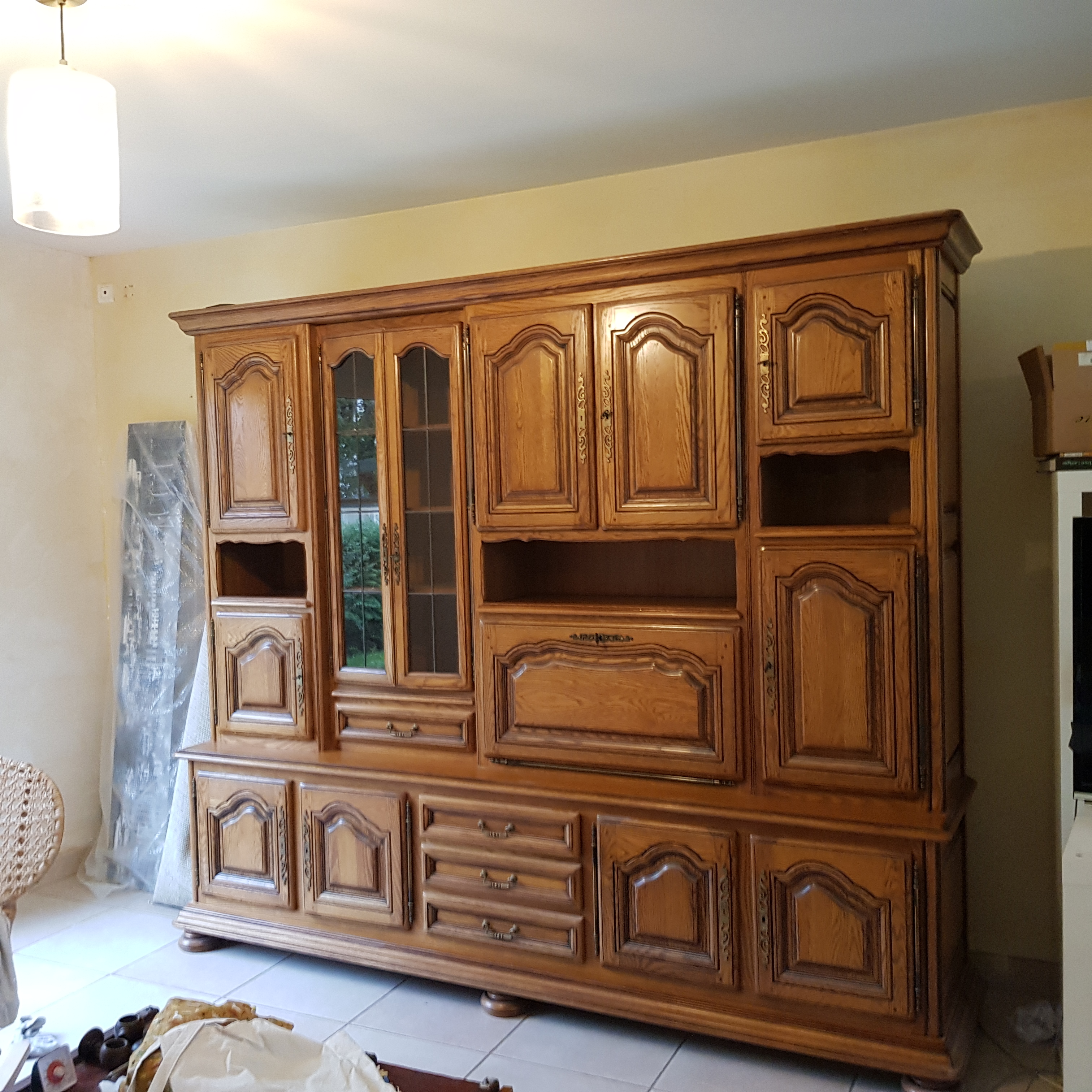 Le vaisselier de Philippe et Marie-Laure pesait son poids de chêne. Dense, en bois noble, sous les moulures et le vernis sombre.